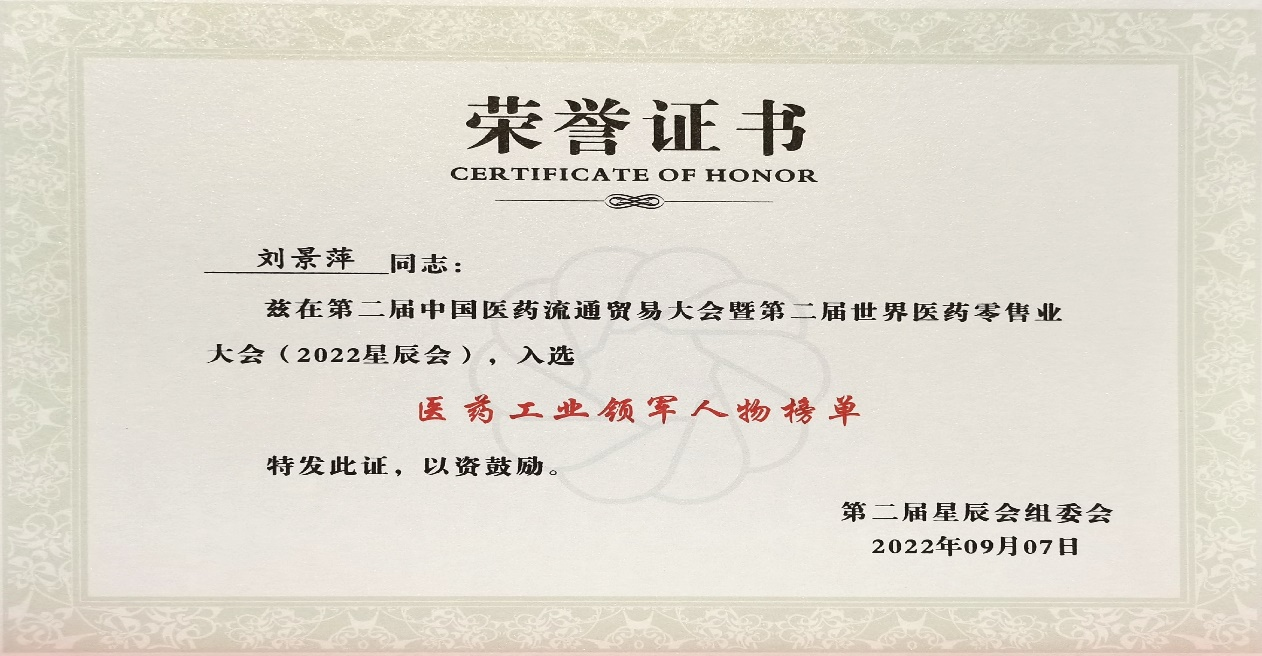 本次星辰会期间,开云电竞斩获颇丰,获得多项行业奖项及荣誉。在开幕式上,刘景萍董事长荣获“医药工业领军人物”称号。