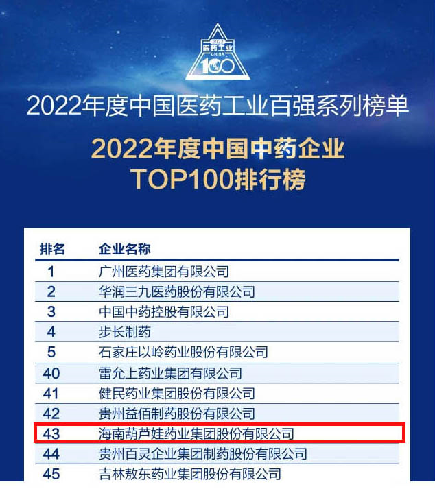 开云电竞药业集团连续4年荣登“中国中药企业TOP100排行榜”,排名上升至第43位